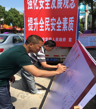 一方面,在人口密集处设置宣传点,统一发放安全生产宣传资料,并在宣传点播放宣传动漫,以轻松活跃的方式向群众传授安全生产知识。另一方面,在集镇处拉横幅和张贴宣传标语,以扩大宣传的涵盖面。同时,采取流动宣传的方式,出动安全生产知识宣传车一台,通过随车广播和沿路发放宣传资料深入村组进行安全生产知识宣传。