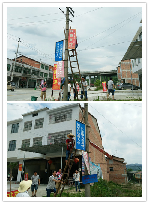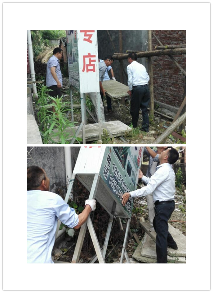 团山村支部书记、村主任亲自动手拆除广告招牌。