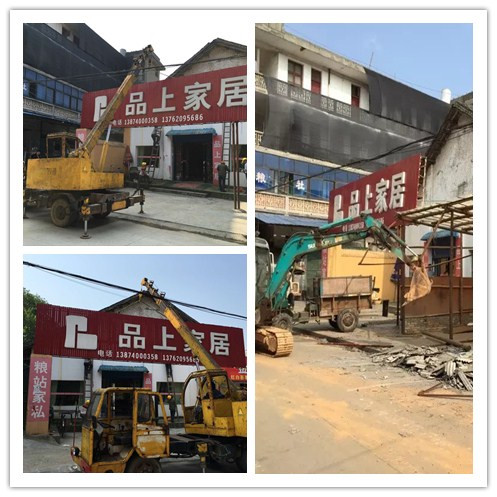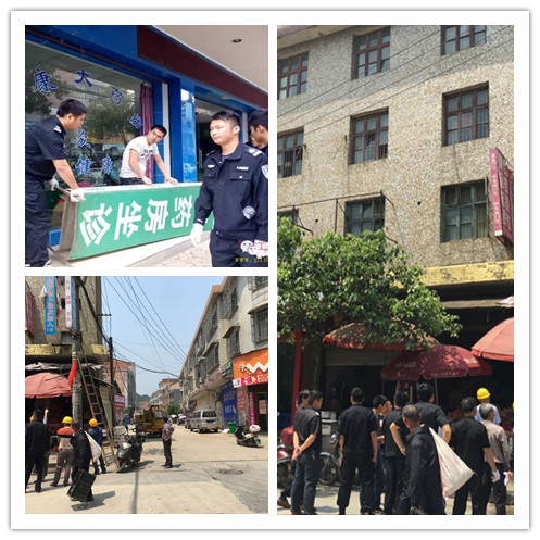 梅仙镇机关应急分队协助城建线干部在梅仙集镇拆除违建招牌