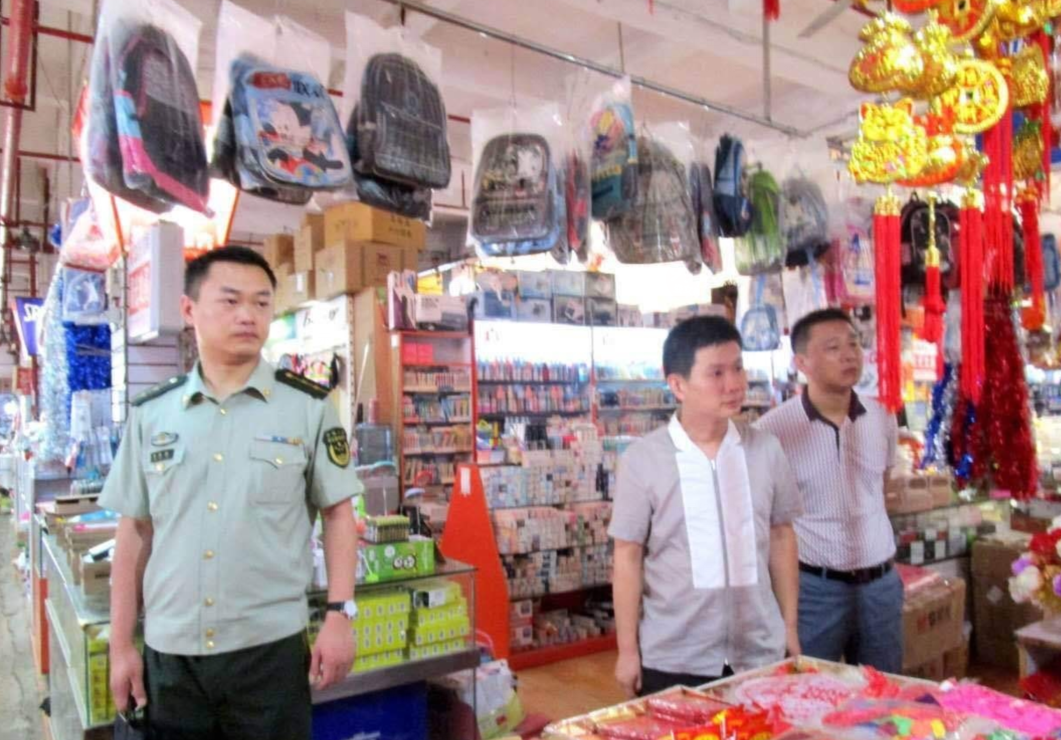 镇党委副书记、镇长陈鑫与党委委员、武装部长胡黎明一同视察老车站和城东市场,确保老城区繁华区域无安全隐患。