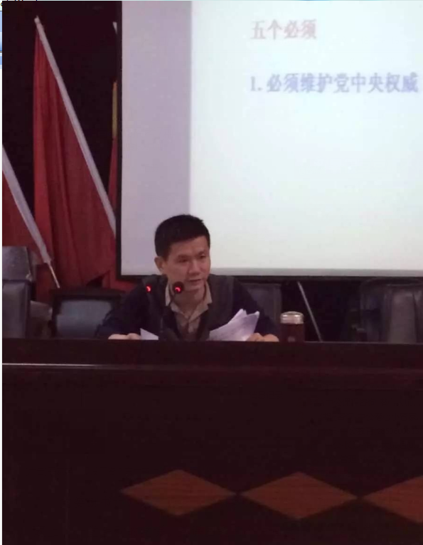 镇党委副书记徐艳斌在专题党课中,指出党员干部应当在工作、政治、生活三个方面做到讲规矩,指出依法依规是党员工作上的法宝。