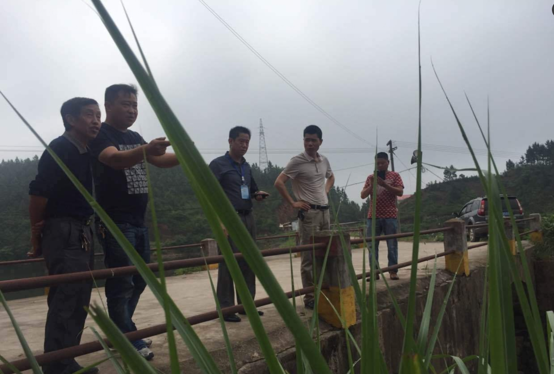 人大副主席胡辉带领办点干部姚中明冒雨检查三兴水库,三兴石场,三多山塘,保城水库。
