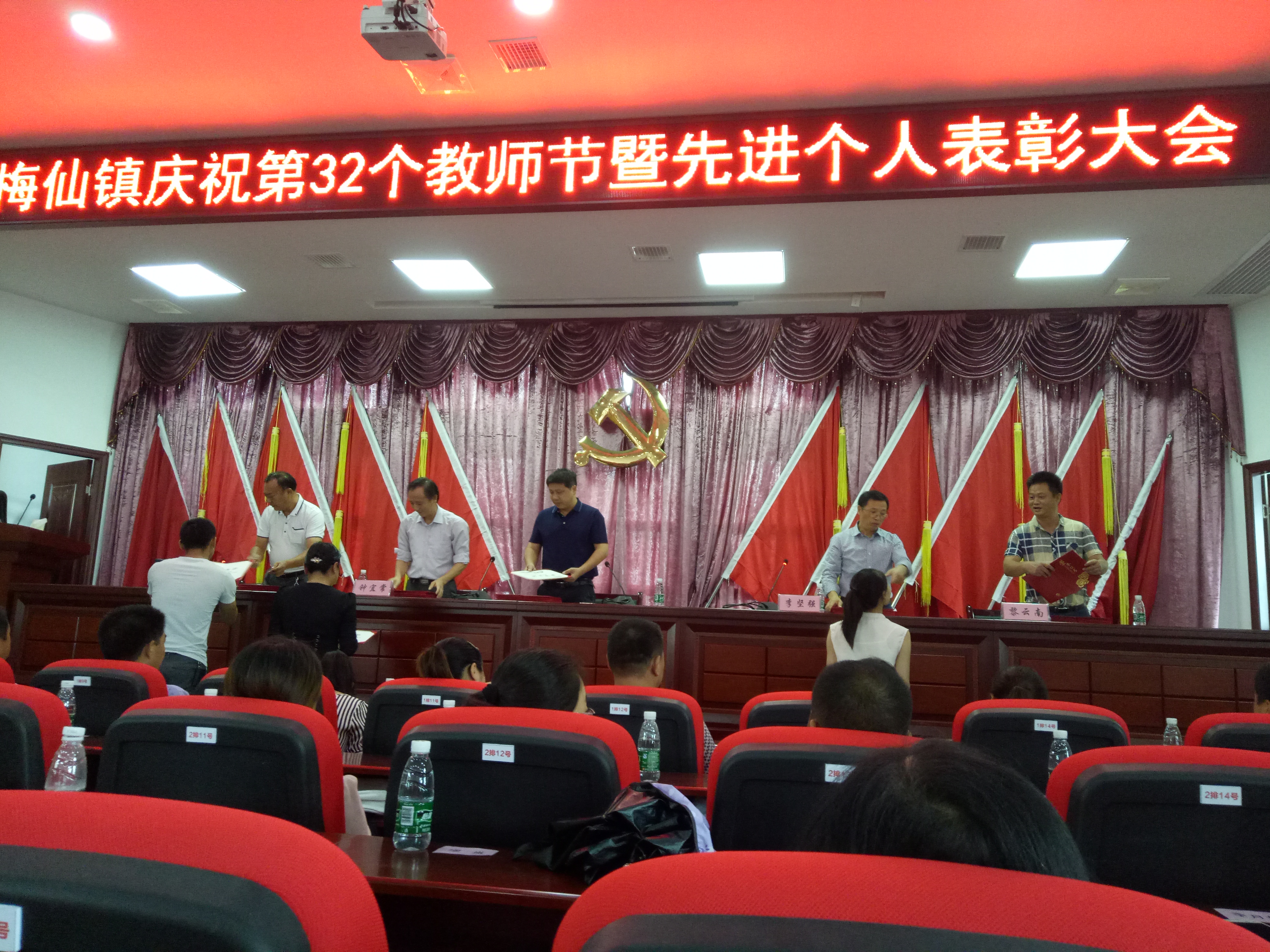 9月9日上午,梅仙镇庆祝第32个教师节暨先进个人表彰大会在镇政府会议室进行,51位先进个人在会上受到表彰。大会设立多种奖项,有优秀校长、优秀班主任、优秀教师、优秀特岗教师、师德标兵。柘庄中学的县优秀特岗老师湛嫦娥,团山中学的师德标兵陈珍珠分别作了典型发言。