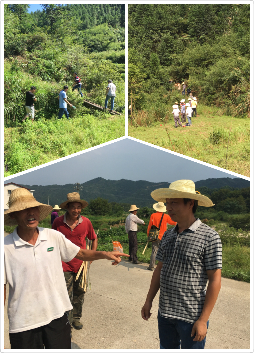 此次工作时间紧、任务重,对线路采用左右两边同时用GPS测绘进行放线。每段线路,每个边线桩都需要精准无误。在有着“万亩林场”之称的青乔村某深山老林中,沿途地形复杂,高低起伏落差大,植被茂盛,全体工作人员攻坚克难、翻山越岭,顶着烈日酷暑,穿越在丛林荆棘之中。经过10天的艰苦奋战,S322公路定桩放线工作比计划提前两天顺利完成任务,保证了S322公路工期顺利推进。