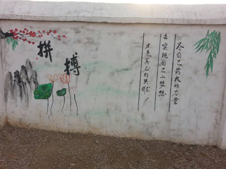 为了给孩子们营造一个良好优美的学习环境,让孩子们时刻感受到校园内浓厚的文化氛围,陈龙根挤出一分一秒的空余时间,精心地在围墙上绘出一幅幅颇有文化韵味的国画,再配上励志的文字,成为了官溪完小一道亮丽的风景线。