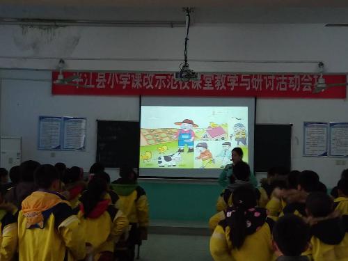 担任本次展示活动的南江镇中心小学作为岳阳市最早的课改实验学校之一,一直将课堂教学改革放在首位,向教研要质量,用课改打造高效课堂。近期推出的“三五”课改已初见成效,用“方向语文”、“形成数学”、“游戏英语”课改目标指导课堂教学,本次担任课改示范活动的15位老师结合三五课改的要求,认真设计课堂,以学生为本,体现高效课堂的教学特色,参与听课的许多教师对此评价极高:听一年级李冉冉老师的绘本《猜猜我有多爱你》的解读课,教室里挤满了听课的老师,从门口就透出阵阵热气;六年级李晨星老师的《百分数》教学,娓娓道来,抽丝剥茧,在到位的引导下形成新的数学理念,于潜移默化间掌握知识;四年级陈柔老师关于习作的指导课更是吸引了大批粉丝,连课桌行间也挤满了共同参与听课的老师,绘声绘色,作心理刻画,用语言渲染,用一腔年青的执教热情为参与活动的教师驱赶了严冬的寒冷,显现出冬天里特有的温暖;三年级王永靠老师的《王老先生》音乐课展示课,以唱游与表演,互动与展示相结合,阵阵笑声让人大量燃烧卡路里,个个热情迸发,感同身受一起蹦跳,真是课堂精彩看得见,教研氛围春更浓,使该校的课改示范展示与研讨活动呈现出一种从未见过的火热,为参与活动的教师在参与教研的征途中,在心里燃起了热情教研的一把大火。