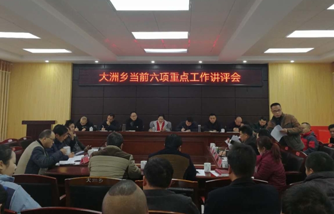 13日,大洲乡人民政府召开大洲乡当前六项重点工作讲评会,由全体机关干部、村干部参会,会议由乡长林石柏主持。
