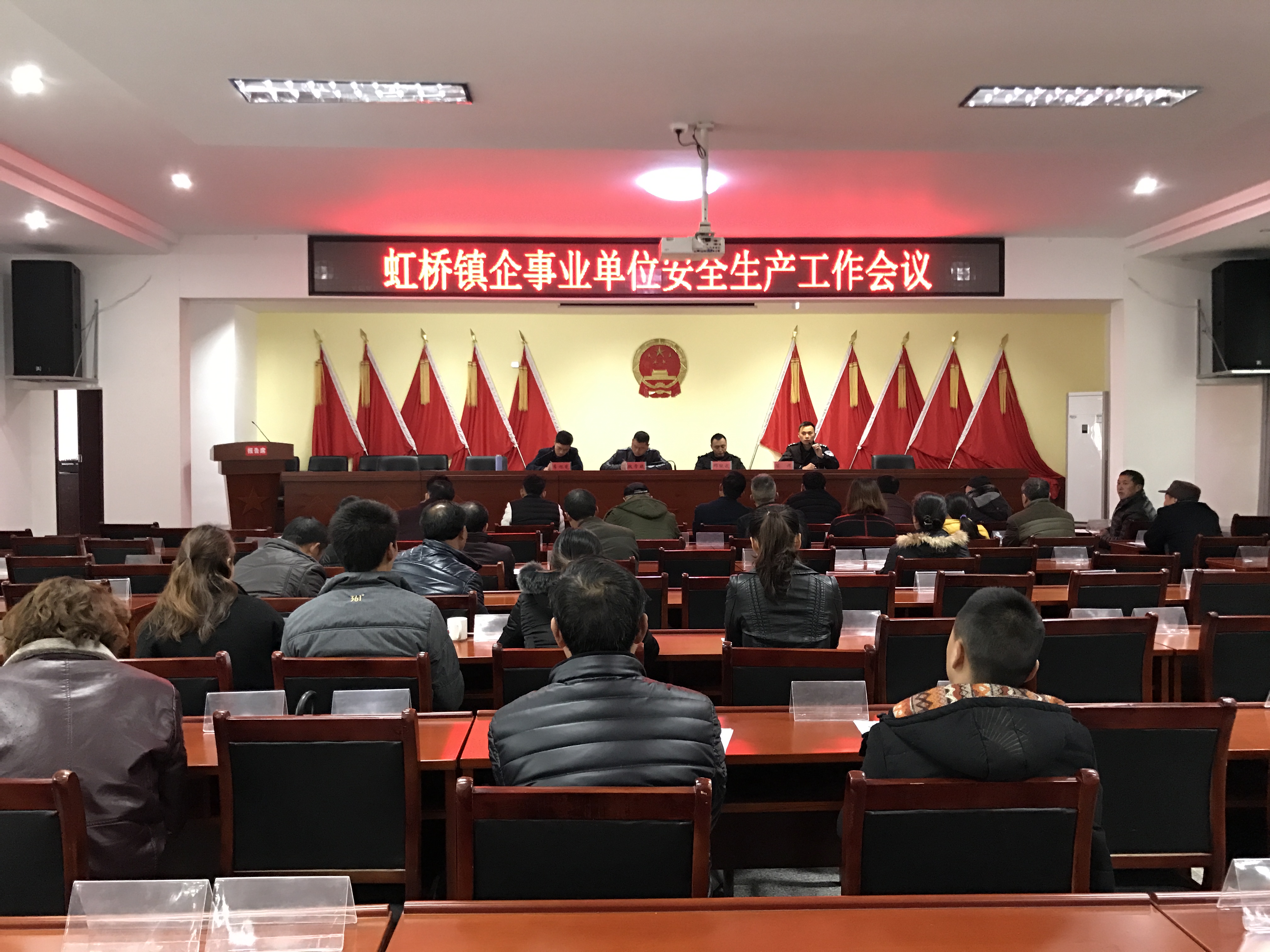3月11日,虹桥镇企事业单位安全工作会议在镇机关大会议室召开。会议由镇安全办主任李旭光主持,镇上所有企事业单位负责人参加会议。