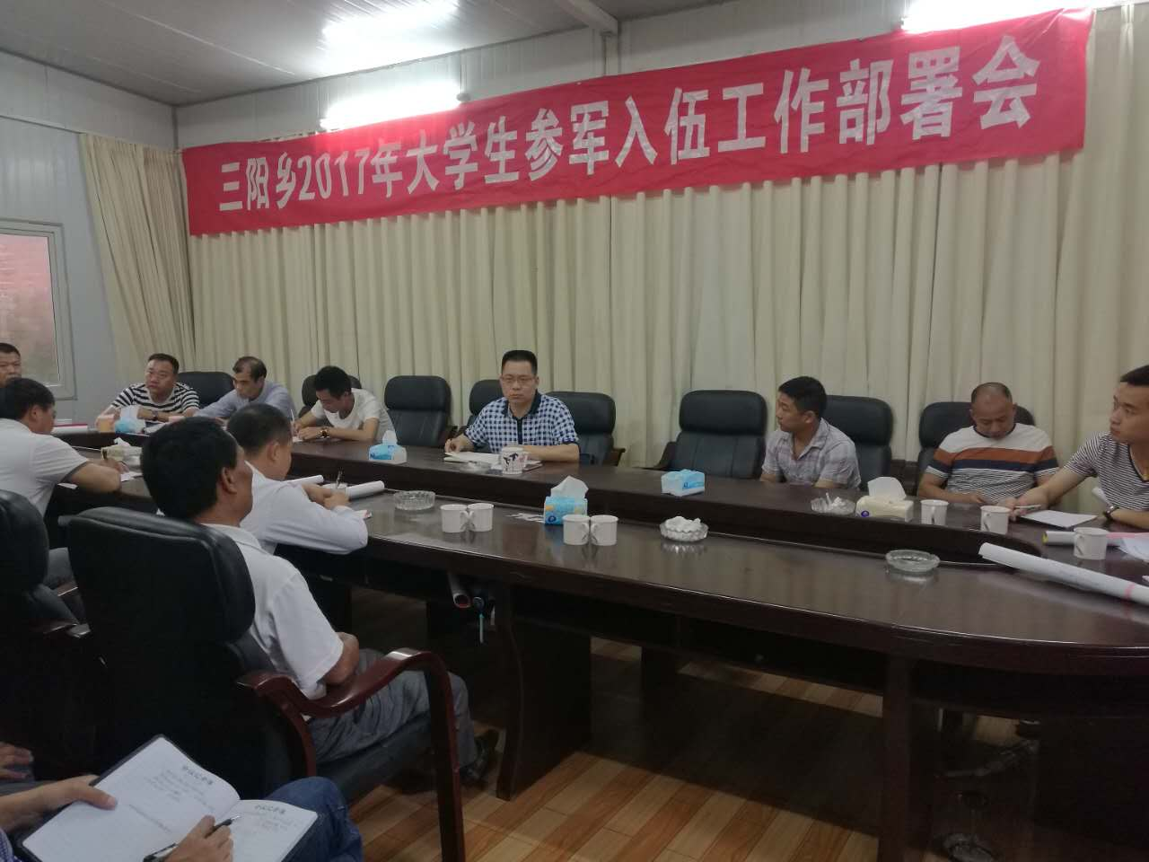 6月5日,三阳乡召开2017年大学生参军入伍工作部署会,该乡武装部长、武装干事、22个村的民兵营长参加了会议。