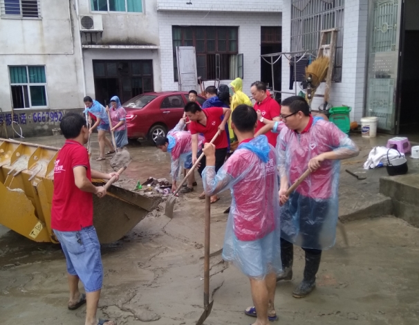 据悉,该镇在8·12特大暴雨中,降雨量达228.5mm,全镇32个村及居委会遭受了重大损失。特别是地处昌江河下游的高坪村,南杰电材工厂及主要临河居民区受灾极为严重,洪水浸灌房屋达1.5米以上,出现了房屋倒塌、河堤损毁及水电中断等困境。下午,身着火红“小城微爱,让世界充满爱”工作服的队员们,下车后不顾厚达10厘米以上的淤泥层,用自购的铁锹就地开展清淤劳动。党员教师李锋、邹勤良尽管戴着厚厚的近视眼镜,还是抢着挥铲除污,来自双溪小学的青年女老师池檀芳、凤阳小学的方五洋校长丝毫不顾灾后留下的恶臭味,坚持自始至终冒雨清除垃圾。其中,还有三位学生主动参加,今年考上湖南商学院的平江四中毕业生刘佳惠同学劳动尤为积极,他本身也是受小城微爱协会资助成才,更懂得公益的意义。至六点,队员共清除淤泥路面达700余米,为该组村民出行创造了有利条件。另外,他们还为多户贫困家庭送去了100多件应急衣物。