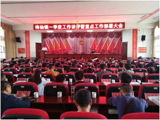 4月12日,梅仙镇召开一季度工作讲评暨重点工作部署会,全体干部职工、村支部书记、村主任和部门负责人参加。会议由人大主席彭中华主持。