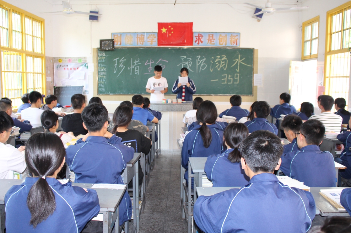 “生命安全高于天,父母给你的生命只有一次,所以每个人都要格外珍爱生命、注意安全,充分认识溺水事故的危害性,掌握必要的自救与互救技能。”5月14日第一节课,平江四中38个班级利用班会课时间,在班主任和班干部的主持下,召开了防溺水“六不准”与“一会”专题班会,在炎热盛夏到来之前为学生拧紧呵护生命的“安全阀”。