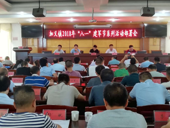 7月18日上午,加义镇在机关四楼会议室召开“八一”建军节系列活动部署会,全体党政班子成员、各管区书记、管区主任、办室负责人、办村干部、村支部书记共100余人参加会议。
