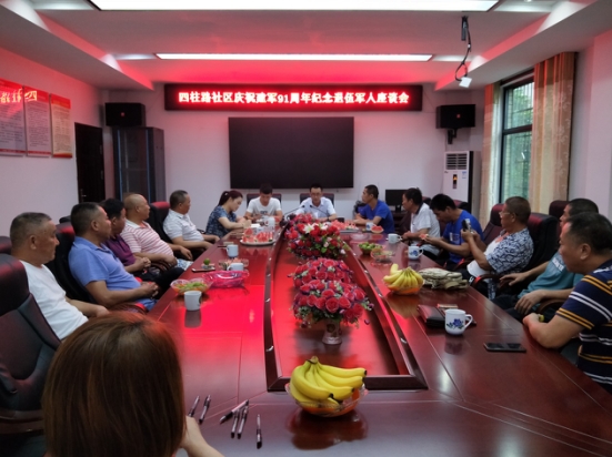 为热烈庆祝中国人民解放军建军91周年,7月23日下午,城关镇四柱路社区召开建军91周年退伍军人座谈会。邀请了辖区内退伍军人、参战军人等25余人,社区联点干部陈龙根参加会议,社区党总支书记徐毅平主持会议。