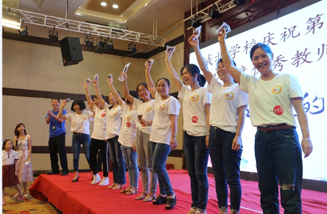 灯光温暖,欢笑阵阵,激情满怀,呐喊震天。晚上7点,主题为“弘扬高尚师德,潜心立德树人”的第34个教师节庆祝暨年度优秀教师表彰活动开始。本次活动,由创意十足的单丹老师策划,旨在活跃教师文化生活,展示学校教师风采,让所有老师在特别的日子里感到幸福、满足。