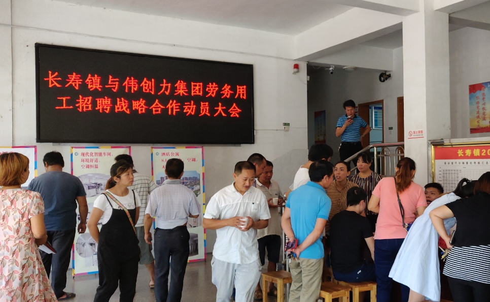 9月20日上午,长沙伟创力公司人力资源部平江招聘组现场招聘会在长寿镇举行。大批待业人员前来现场应聘,积极向伟创力公司进行就业咨询,了解用人单位情况。招聘会从上午九点半持续到十一点,当场签约33人,其中一人因为身体残疾,无法正常工作,被安排管理员工宿舍。