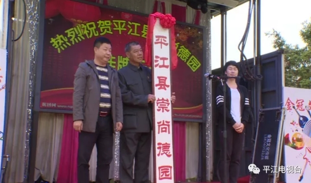 授牌仪式上,南江镇相关负责人致欢迎词,崇尚德园负责人介绍了创园历程,县民政局相关负责人宣读了批文。县委宣传部、县文明办相关负责人为崇尚德园授牌。