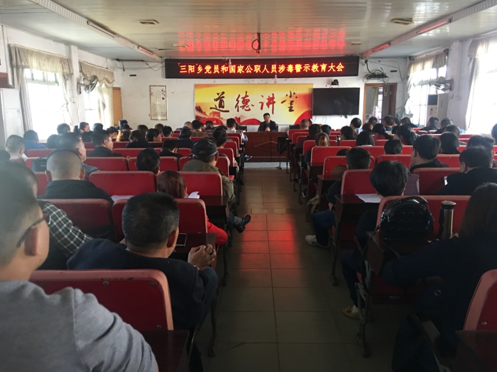 11月2日,三阳乡在乡政府三楼会议室召开党员和国家公职人员涉毒警示教育大会,全体机关干部职工参加。