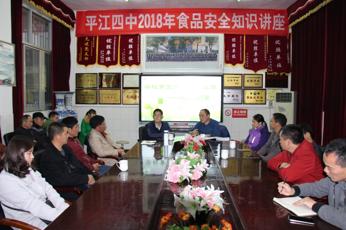 “食堂的卫生很干净,设施先进,菜品丰富,让我们做家长的非常满意、放心。”家长代表们参观后纷纷表示。11月15日下午,平江四中后勤处邀请9位家长膳食委员会代表、南江镇食药工商监督管理所3位工作人员一道检查该校食堂卫生安全与内部设施。晚间,校方组织一线操作员工、主要食材供货商、后勤处老师共计40余人,认真听取了由李谆谆所长主讲的《学校食堂食品安监管-——问题与对策》专业知识培训,进一步认清了当前食品安全形势与操作规程,增强了责任意识、风险意识与安全意识。
