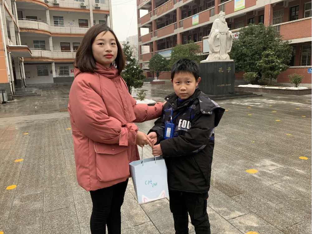 元旦假复课后,刘女士来到该校,向该校领导,班主任详细反应了此事。她表示,童子烨的这种行为让我非常感动,也非常感谢学校,老师的教育。今天特意带来点小礼品,专程感谢童子烨同学。