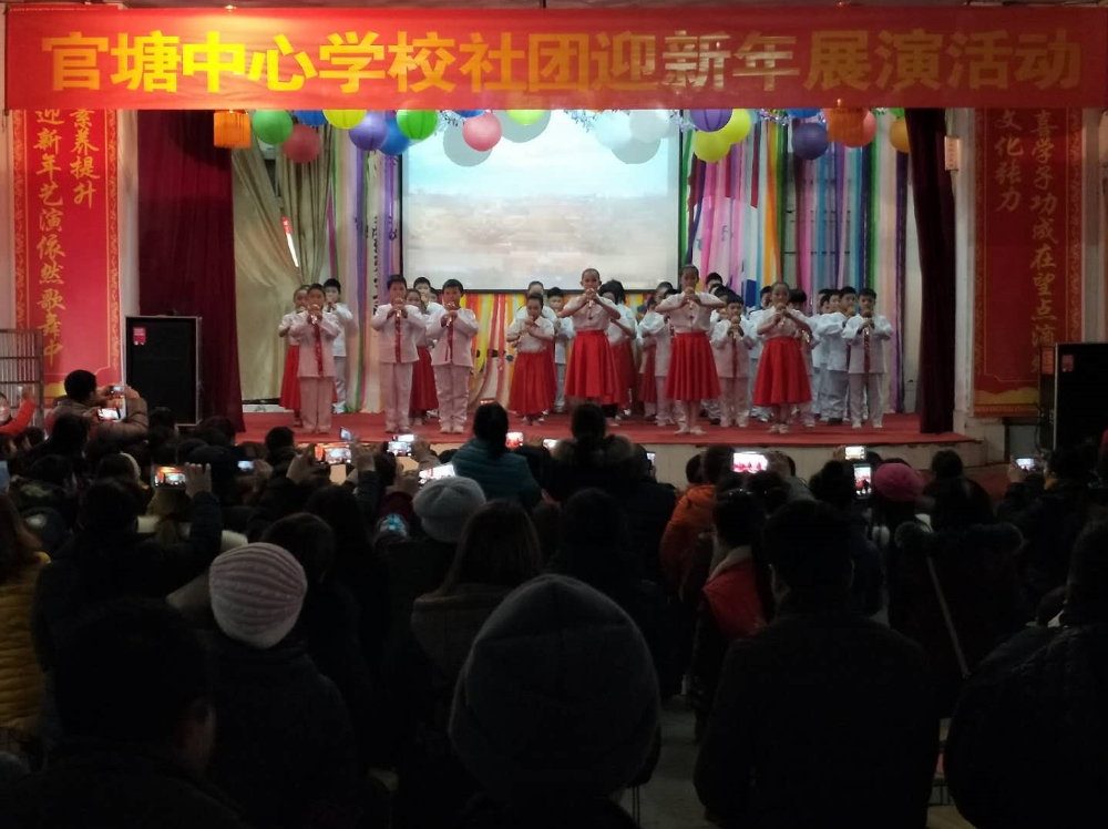 元月8日下午1:30,熊熊炭火节拔高迎新年展演的温度,掌声、喝彩声让官塘中心学校校园沸腾起来。
