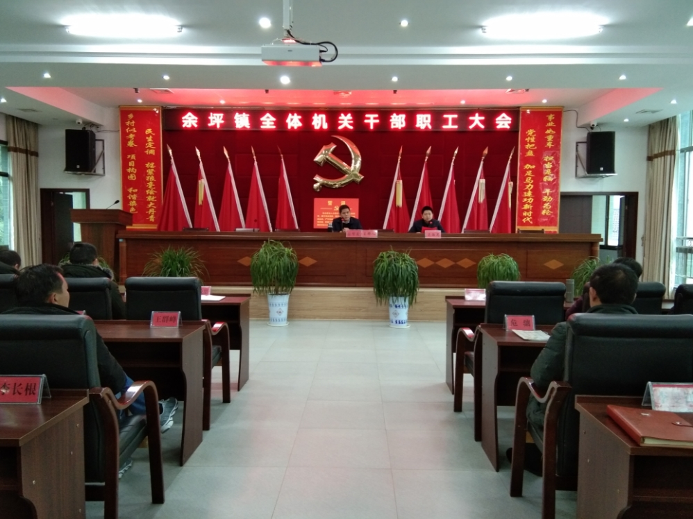 今天是农历新年后的第一个工作日,升旗仪式结束后,余坪镇在机关四楼会议室召开全体机关干部职工大会。