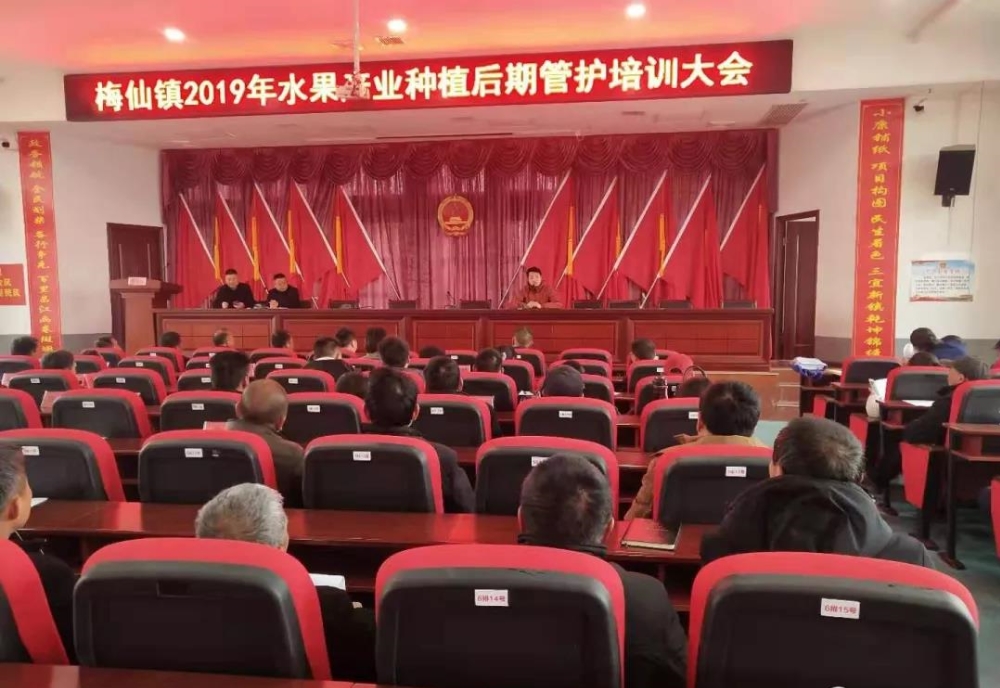 3月17日上午,梅仙镇召开2019年水果产业后期管护培训大会,各村产业发展负责人、峰岭菁华果业公司工作人员和水果种植户参加会议,大会由常务副镇长吴泽主持。