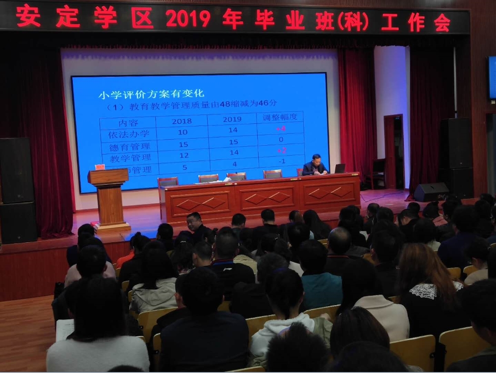 3月21日晚,安定学区三百多位中小学毕业班(科)老师在平江七中报告厅集结,召开2019年毕业班(科)工作会,专题部署备考提质工作。