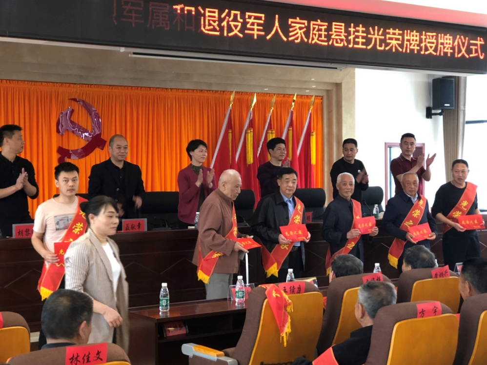 4月24日,城关镇举行烈军属和退役军人家庭悬挂光荣牌授牌仪式,镇机关70余名烈军属、退役军人光荣授牌。