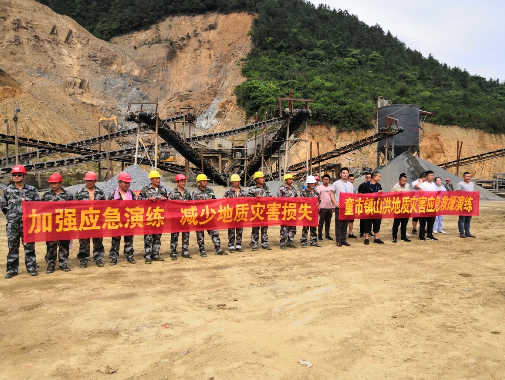 本次演练模拟翠阳石场因汛期持续强降雨,极有可能暴发山洪、泥石流等地质灾害,严重威胁群众生命财产安全,童市镇防汛指挥部迅速启动应急预案,组织救援队有序开展救援。