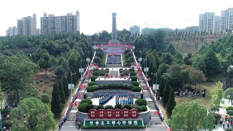 “祖国,我向您表白!祖国,我爱您!”老城烈士陵园里人声鼎沸,欢歌如潮。一场由汉昌学校师生带来的以“唱响汉昌,我和我的祖国”为主题的歌舞“快闪”活动在这里精彩上演,喜庆热闹的场面引得过往群众纷纷驻足围观。