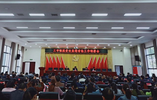 10月30日上午,三市镇召开当前重点工作部署会,对脱贫攻坚、安全生产、医保征缴等工作进行再调度、再部署、再推进。各村党支部书记、村主任、镇直部门负责人、驻村工作队长、扶贫专干、全体机关干部共200余人参加,会议由镇长徐莉主持。