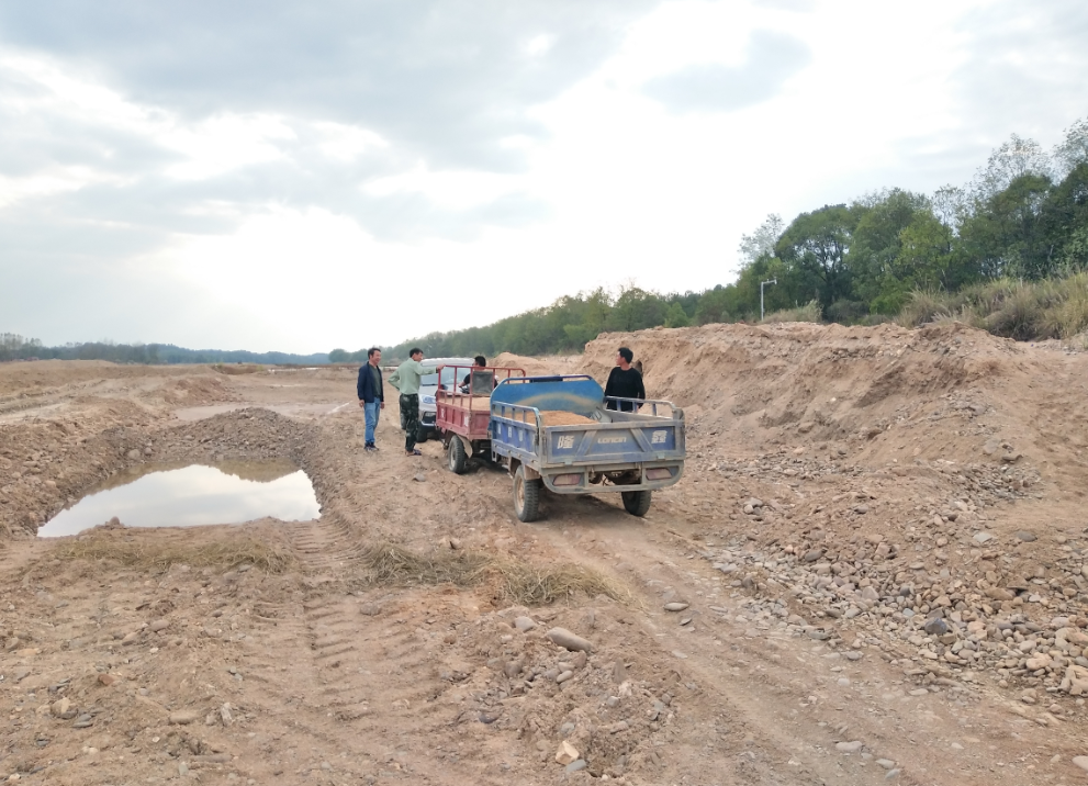尽管如此,该乡河道管理工作仍然任重而道远。造成管理难度大的原因主要有二,其一为该乡非法采沙人员大多为河道附近居民。“黄金价”激发了村民挖采沙石的热情。该乡采取行动加大查处力度后,依旧有居民受利益驱使,铤而走险,在凌晨偷采、盗采河沙。条件允许的用小型挖机、小货车、农用三轮车,条件受限制的用手提、用肩扛。蚂蚁搬家式的采沙行为严重破坏了河道生态环境。