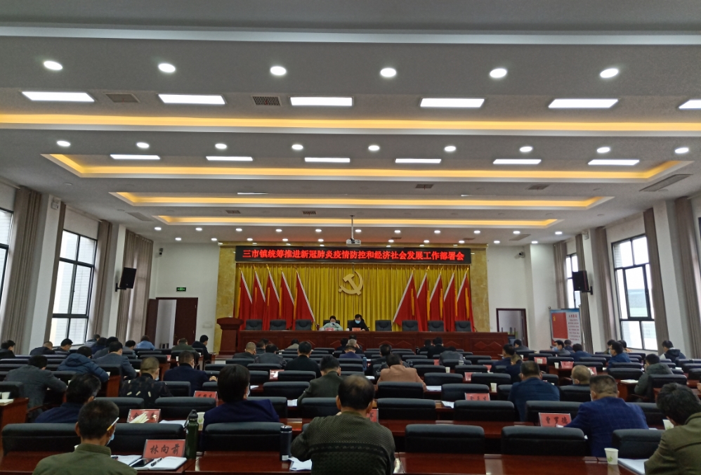 2月26日,三市镇召开统筹推进新冠肺炎疫情防控和经济社会发展工作部署会,全体办村干部、各村支部书记、卫生院等相关部门代表参加。会议由党委书记谭晓峰主持。