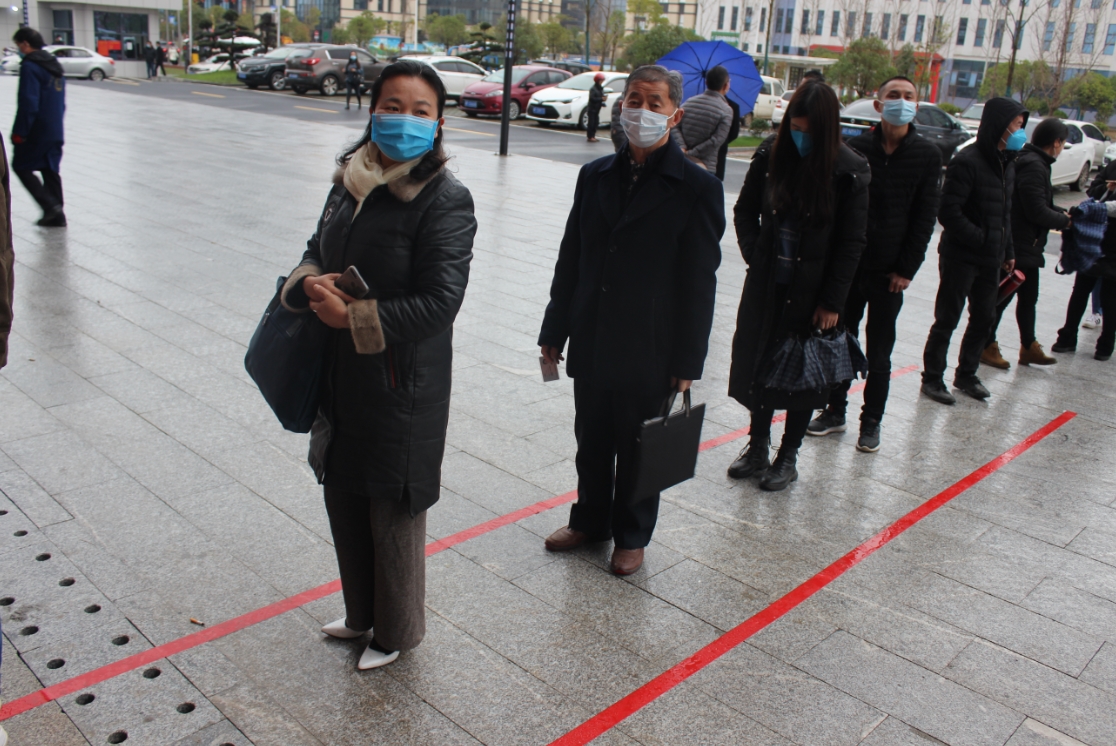 “同志,今时不比往日,你排队要隔开一点哦……”从早上到中午,现场劝导员一刻也没有停歇过。“人员间隔近了要提醒,取下口罩抽支烟的要禁止,扎堆聊天的要劝散,虽然天气有点冷,但你看我居然热出了汗……”