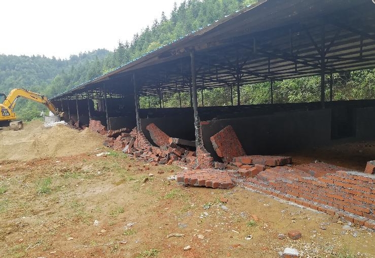 该处养猪场因占用永久基本农田,镇分管负责人,国土、城建等部门工作人员多次上户对户主皮某进行劝导,并下达停建通知,但皮某未按要求自行拆除。为坚决遏制违章搭建、乱占耕地的行为,余坪镇依法对其进行强制拆除。