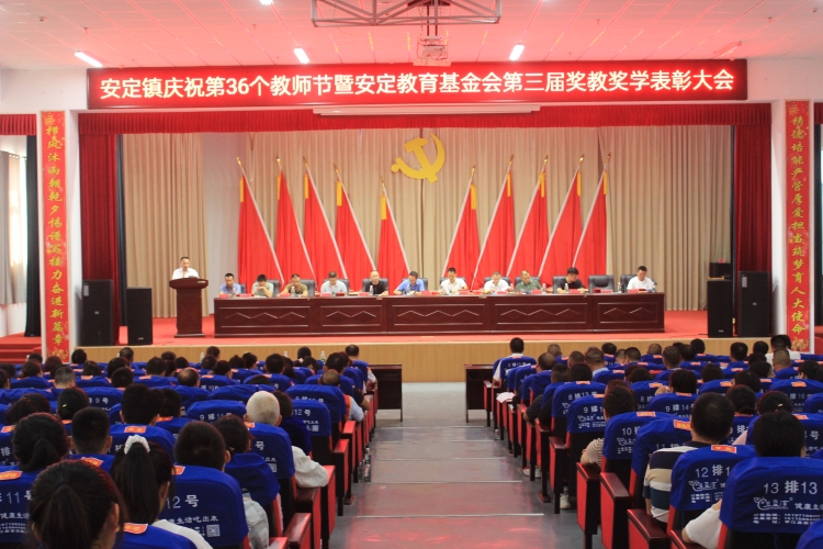 9月9日,安定镇召开庆祝第36个教师节暨安定镇教育基金会第三届奖教奖学表彰大会,安定教育基金会全体成员、各村(居)支部书记、平江七中校务会成员、安定学区全体工作人员、安定各中小学校教师及受表彰的优秀团队和个人参加表彰大会。会议由镇党委委员、镇人大主席彭建国主持。