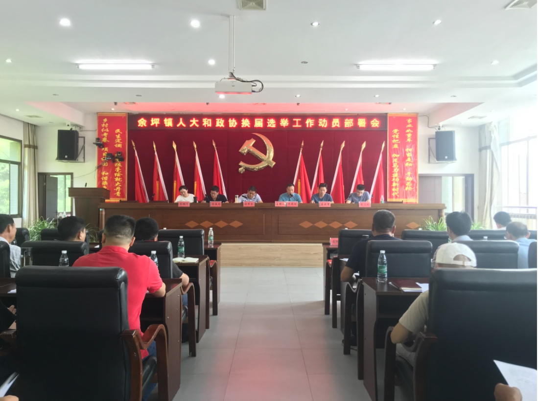 7月19日上午,余坪镇召开人大和政协换届选举工作动员部署会,学习贯彻中央、省市县相关会议精神,全面动员部署人大、政协系统换届选举工作,并对业务专干进行培训。会议由镇党委副书记、镇长李照球主持。