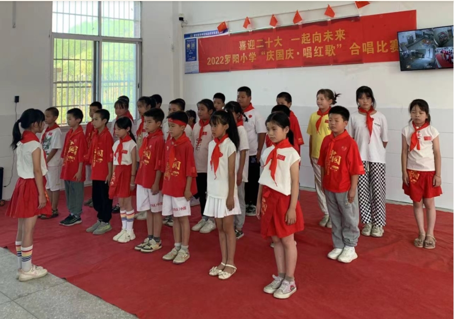 为庆祝新中国成立73周年,迎接党的二十大,大力弘扬爱国主义精神,培养教师和学生热爱祖国的情怀和积极向上、朝气蓬勃的精神风貌,努力形成班班有歌声,人人唱好歌,师生共参与的喜人局面,营造浓厚的节日喜庆氛围和良好的校园文化环境。9月29日下午,罗阳小学特组织全校师生开展“喜迎二十大,一起向未来”为主题的唱红歌比赛活动。在活动比赛前,学校进行了以“喜迎二十大 向国旗敬礼 强国复兴有我”为主题的升旗仪式。