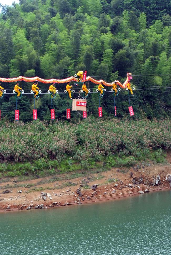 2009年6月28日,一个让人惊心动魄的日子,中国大陆新锐派魔幻高手杨雨辰在平江沱龙峡景区首推大型真人穿越魔幻秀“生死穿越沱龙峡” ,向国际顶尖魔术师丹尼尔斯的经典魔术“穿越美国大峡谷”发起挑战。杨雨辰将一位带着一件不可复制信物的美女当众锁进一个箱子,用绳子捆住箱子并放置在沱龙峡大坝龙湖上方。在千万观众眼前把绳子烧断使箱子从五十米高空抛进沱龙峡大坝上方的龙湖。让观众惊奇的是一阵烟雾之中,美女穿越了这座宽十米、高五十米的钢筋混凝土大坝,出现在大坝下方一座水上孤岛的中央,此时美女手上仍拿着那件不可复制的信物。转瞬之间实现百米大挪移,究竟是魔术师的障眼法还是依赖了物体运输的高科技?这一切都令人叹为观止!数千游客要杨雨辰揭秘,但魔术的魅力就在于,秘密只属于魔术师。活动主办方湖南都市频道称杨雨辰之所以选择在沱龙峡景区表演“生死穿越沱龙峡”,是因为沱龙峡比美国大峡谷更为险峻,对魔术师来说是对自己极限的一次挑战。如此大规模的景区为何以前一直默默无闻呢?许多游客对此深为不解,那么让我们来解密沱龙峡。