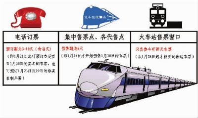 1月21日起开始电话预订春运首日即1月30日的车票。19日广铁集团有关部门 表示,铁路部门将在售票、验证检票环节采取多项举措,方便旅客购票和验证进站。使用电话订票相对而言最为便捷。