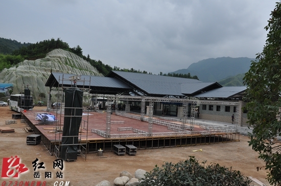 图为在平江连云山近千平方米的巨型魔术舞台已搭好。