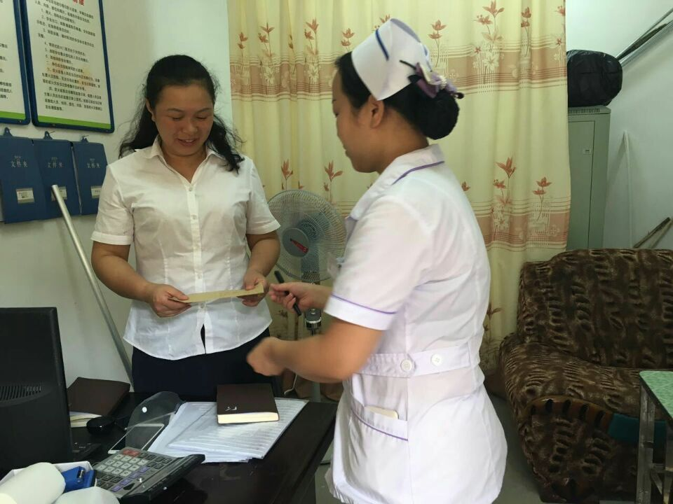 我们的护士长将科室的一份小小心意送到何经理手中,希望周理能够战胜病魔,早日康复,重返校园。