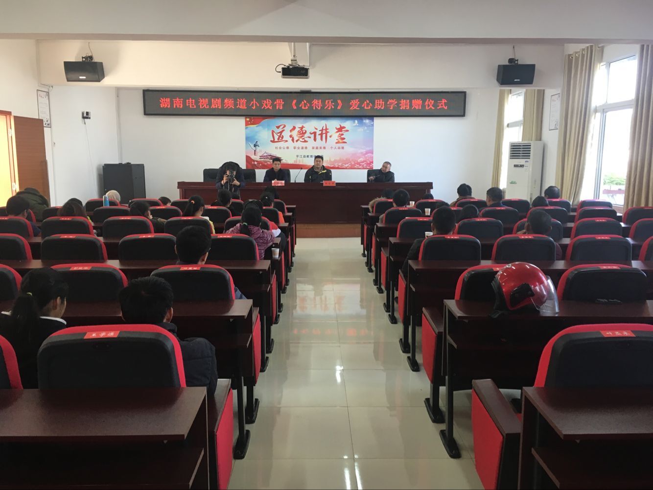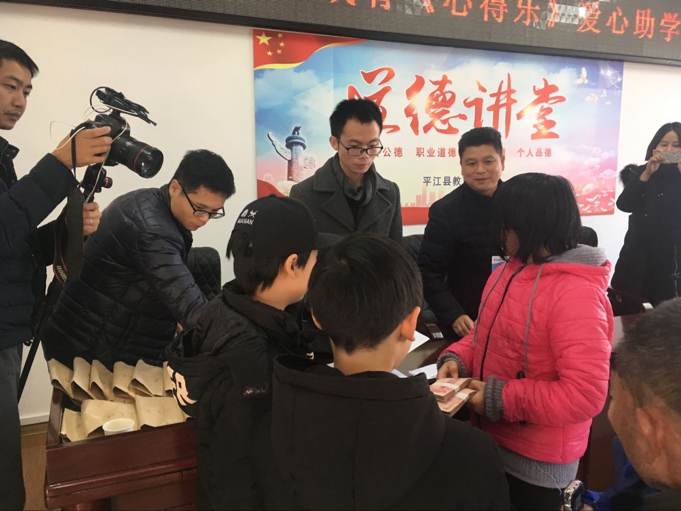 1月13日,湖南电视剧频道《心得乐》栏目组一行来到平江开展爱心助学活动,《小戏骨》剧组三位小演员将36万元爱心款分别交给21名山区贫困孩子,让这些贫困家庭孩子温暖过大年。