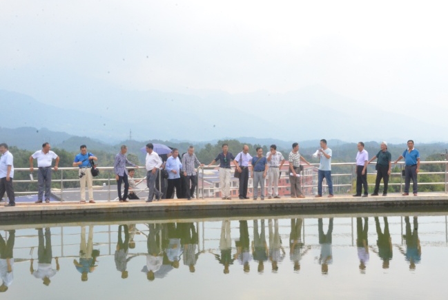 上午8时,一行从城关驱车80多公里来到青山叠翠,绿水环绕的黄金洞水库,指挥部工程科工程师卢铁坚详细向大家介绍了水库基本情况,大家都被眼前的景色和我县城乡供水一体化这一目标所感染,南江诗联协会何跨海老师当即赋诗一首,曰:“四十年前大利游,无边树色慰淹留。如今水岸搜行迹,多少青山化小洲。”