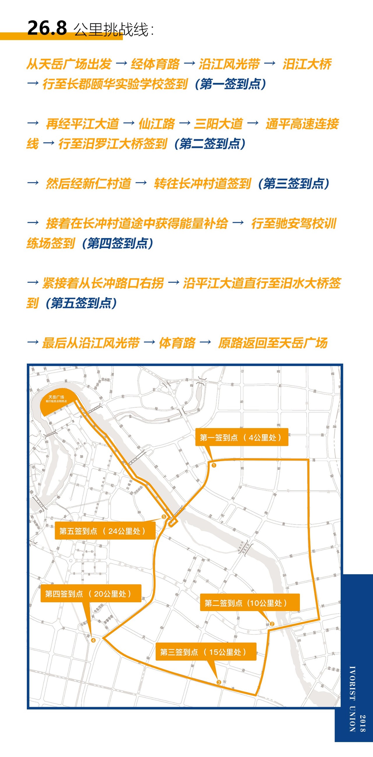 为营造最佳毅行体验,本届毅行路线历经多番考察,环绕汨罗江风光带精心设置,分16.8公里体验线及26.8公里挑战线。