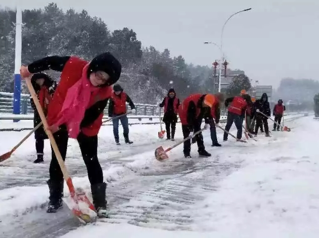 广大干部群众闻雪而动,纷纷奔赴各路段,开展铲雪除冰和应急救援工作。党员干部、志愿队伍、环卫工人以及自发加入的市民群众共10万余人,齐心协力铲除冰雪,一些沿街爱心商家为大家送上热腾腾的姜汤。不到半天,城区、集镇和主干道路上的积雪基本上铲除干净,车辆和行人可以缓慢通行。
