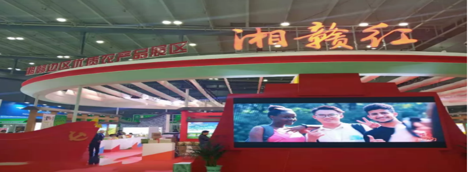 本届博览会首设“湘赣红”湘赣边区优质农产品展区。“湘赣红”展区以红、黄两色为主色调,总面积378平方米,由湖南省10个县市区及江西省14个县市区组成。平江酱干、油茶等特色优质农产品均有展柜进行布展。