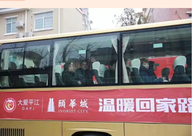18号上午九点,第一批报名“大爱平江 温暖回家”乘坐免费班车的十位乘客,登上爱心大巴,开启了他们1小时40分的回平路。