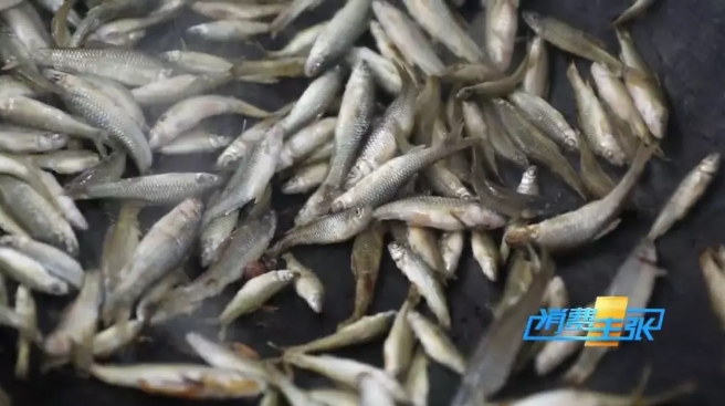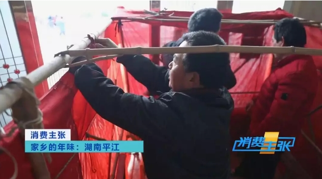 余含兮和朋友们忙着写春联,而他的母亲黄细华正在门口的池塘边忙活着,用长竹竿挑起前一天下的鱼笼,里面有几十条小鱼。火焙鱼是平江的一道传统名菜,而这些小鱼正是这道菜的主要原材料。